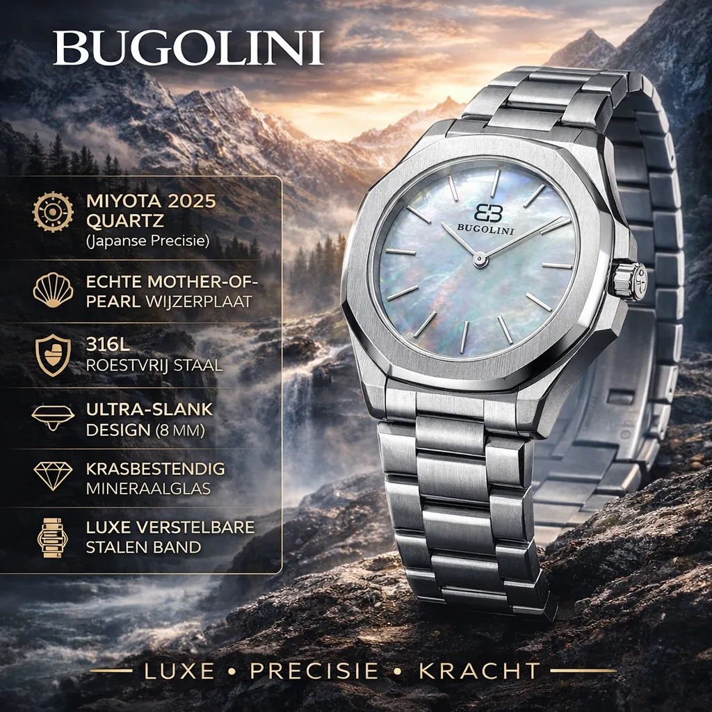 BUGOLINI AMOR Staal Zilver – 36 mm Miyota 2025 Quartz Horloge voor dames