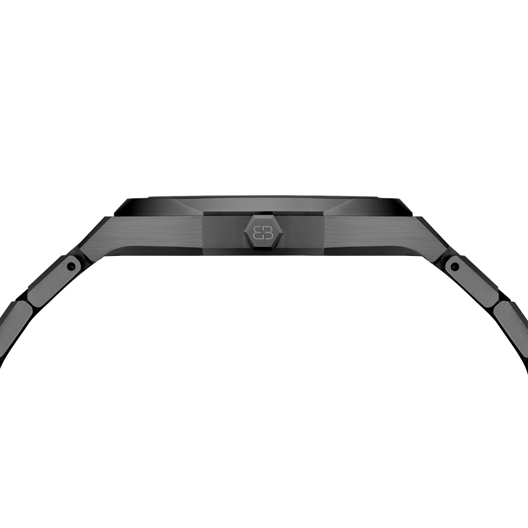 De volledig zwarte roestvrijstalen kast en band geven het horloge een gedurfde, moderne uitstraling. Krasbestendig mineraalglas en 5 ATM waterbestendigheid maak dit horloge klaar voor dagelijks gebruik—at werk of spelen.